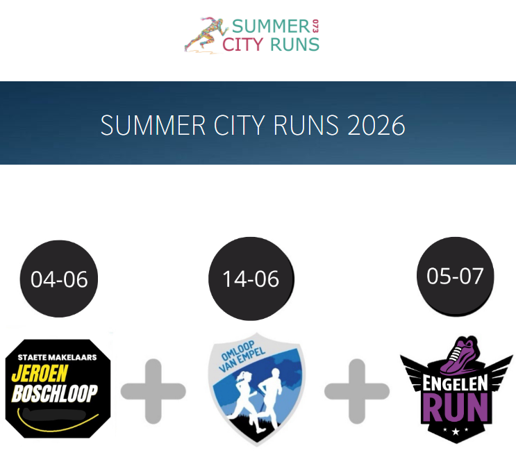 Hardlopen is leuk en gezond. De vele evenementen bieden aan een diversiteit van hardlopers ieder wat wils. Zo kan je lopen voor de gezelligheid en je eigen prestatie en de wedstrijdloper strijdt voor de winst. Dat is wat hardlopen zo leuk maakt; het is van en voor iedereen. Dit is te merken aan de verschillende evenementen die georganiseerd worden. Ook rondom Den Bosch zie je dit terug. Zo heeft Engelen de Engelenrun, Den Bosch de Staete Makelaars Jeroen Boschloop en Empel de Omloop van Empel. Stuk voor stuk worden deze georganiseerd door bedreven bestuursleden die elk jaar weer de lopers willen verrassen. Daarom slaan deze evenementen opnieuw de handen ineen met een Master-klassement “073 Summer City Runs“! Elke hardloper kan zich opgeven voor dit unieke klassement en meestrijden om deze felbegeerde prijs.